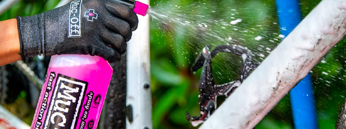 2. Degrease the Drivetrain: Spray a drivetrain cleaner like the Muc-Off formula onto your chain, cassette, and chainrings. Scrub gently with a brush to dislodge built-up grease.